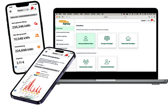 Einfach Strom teilen! energyfamily macht die Verwaltung von Energiegemeinschaften einfach & optimiert die Energienutzung mit satellitenbasiertem, prädiktivem Energiemanagement. Wir fördern Nachhaltigkeit, schonen Ressourcen & stärken die Gemeinschaft.