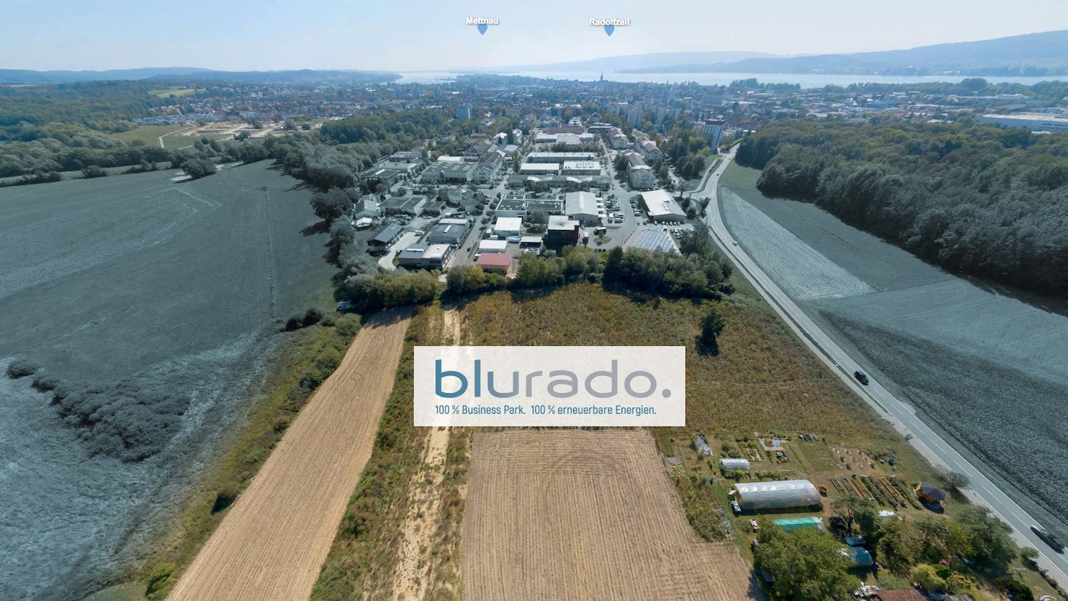 In Radolfszell am Bodensee entsteht nach Angaben der Stadtverwaltung der erste Business-Park Deutschlands, der zu 100% aus regenerativen Energien versorgt wird.