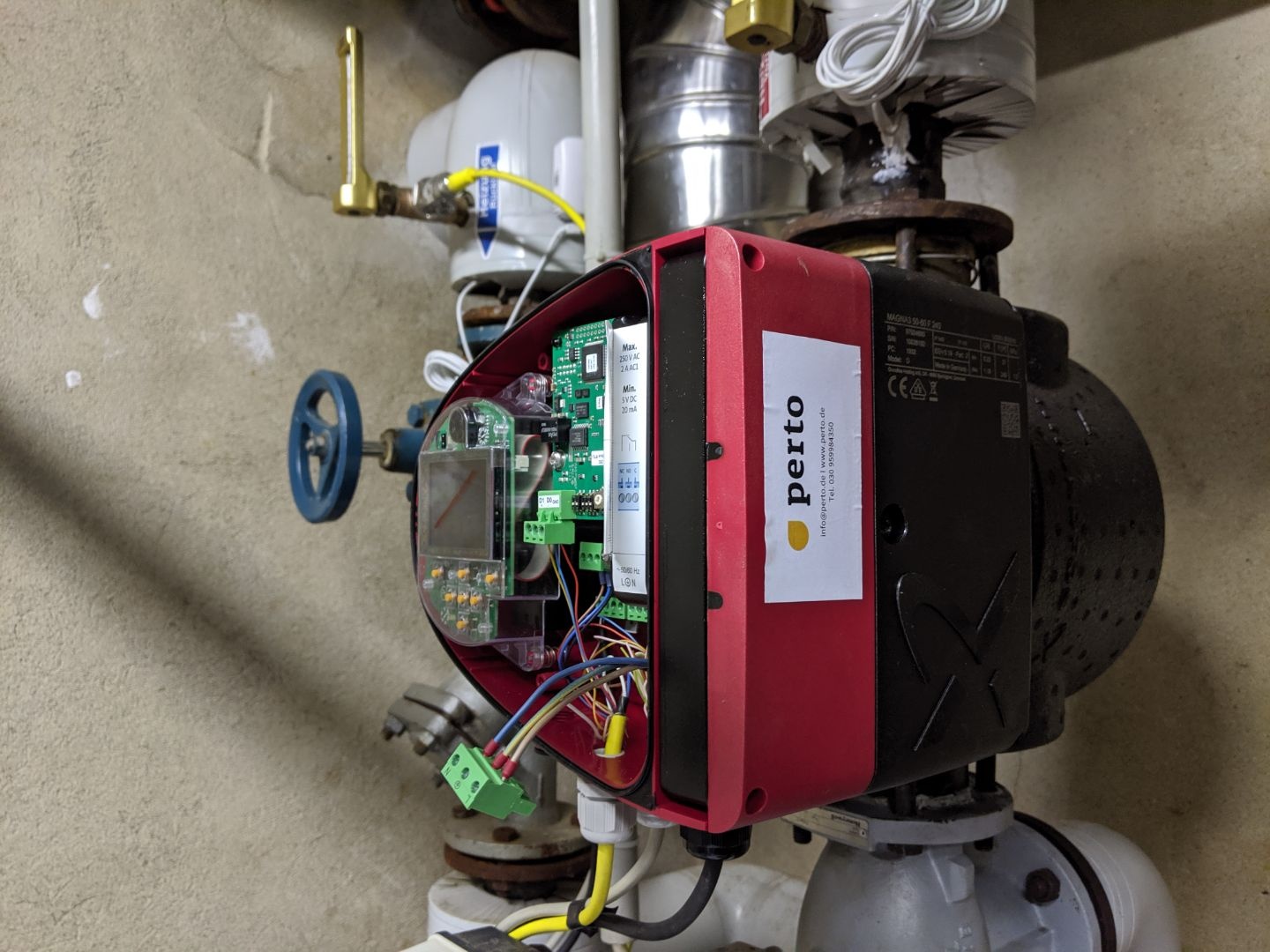 Letzteres war in der Bildhauerwerkstatt Berlin-Wedding der Fall. In dem 1898 erbauten und heute denkmalgeschützten ehemaligen Fabrikgebäude arbeiten auf 3.600 m2 zahlreiche Künstler. Das Heizungssystem umfasst zwei Gaskessel mit je 200 kW Leistung und fünf Grundfos Magna 3 Hocheffizienzpumpen. Eigentümerin der Gebäude ist das Land Berlin, pertos größter Kunde. Im Frühjahr 2020 sollte das Wärmesystem digitalisiert werden. Dafür hat das Start-up die Mess- und Regelungstechnik in den vorhandenen Heizungs- und Zirkulationspumpen genutzt und die Pumpen auf seine IoT-Plattform aufgeschaltet – eine Maßnahme mit wenig Aufwand und zu einem Bruchteil der Kosten einer herkömmlichen Gebäudeleittechnik. Damit sind die Pumpen nicht nur fernauslesbar, sondern auch fernsteuerbar.