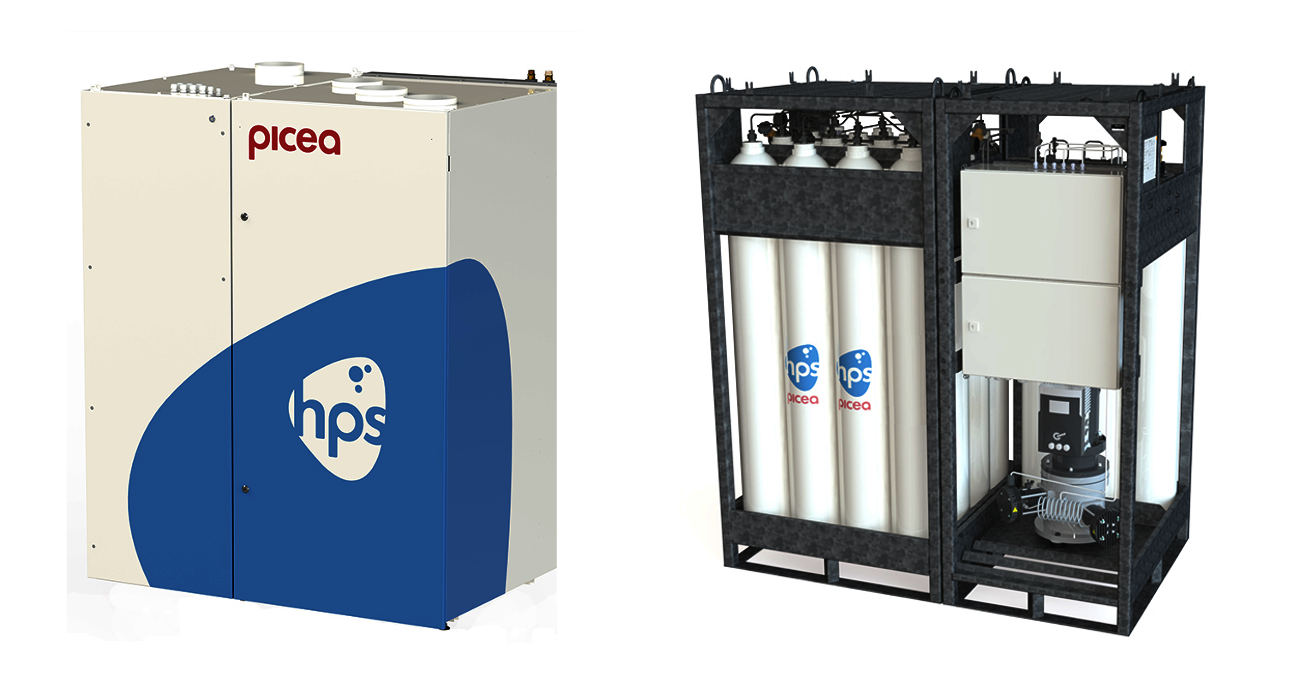 Sich selbst zu 100% CO2-neutral mit Energie zu versorgen, davon träumen viele. Die 2014 gegründete HPS Home Power Solution GmbH aus Berlin macht diesen Traum mit ihrem Heim-Speichersystem picea möglich. Das Prinzip dahinter ist simpel: Mit einer Photovoltaikanlage auf dem Dach wird Solarstrom erzeugt, der entweder gleich genutzt, in Batterien gespeichert oder mittels eines Elektrolyseurs in Wasserstoff umgewandelt und gespeichert werden kann. Dafür umfasst das System eine Batterie (25 kWh) als Kurzzeitspeicher und eine alkalische Elektrolyse (Wirkungsgrad 70-80%) für die saisonale, chemische Speicherung von Energie (1.500 kWh) in Form von grünem Wasserstoff. Mit einer Brennstoffzelle (elektrischer Wirkungsgrad: 45-55%) wird aus dem Wasserstoff wieder Strom gewonnen, für den Haushalt und den Betrieb einer Wärmepumpe. Durch die Einbindung der Abwärme aus der Brennstoffzelle in den Wärmekreislauf wird ein Gesamtnutzungsgrad der elektrischen Energie aus der PV-Anlage von 90% über das gesamte Jahr erreicht.