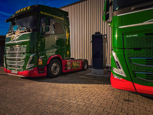 The model is particularly suitable for sites with an annual consumption of 100 MWh or more. Logistic centers are a typical case. Trucks parked overnight or between tours have controllable – often high – charging capacity, which makes their batteries valuable providers of flexibility. If combined with a stationary battery storage system, businesses can cap their peak loads, avoid expensive peak load windows and systematically benefit from periods of cheap market prices.